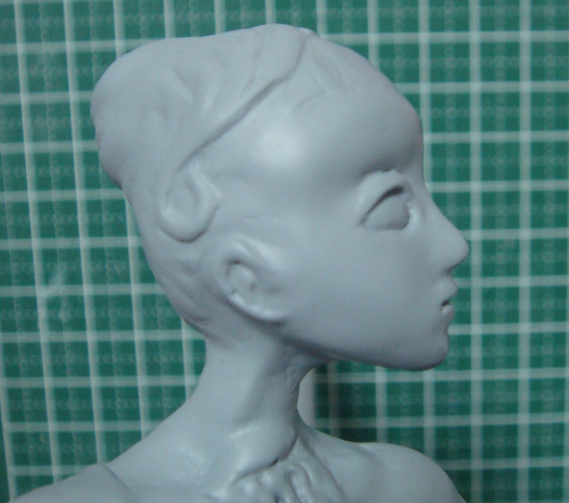 今回は美少女フィギュアのネックレスの作成です。緋山千夏のダンス衣装としてはドレスの首元とネックレスがつながっている。作り方としては最初から首に作っていく方法もあります。ちょうどそネックレスで頭部身体部分を分割して作業をやりやすくすることが出来るから。その分割ラインがネックレスの造形と相まって目立たなく自然な感じに出来るからです!今回は分割を考えていなかったのでネックレスは後付けです!