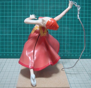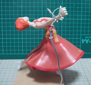 これはもう、更に色を塗り重ねて色のトーンで立体感を出す!と無謀な挑戦。暗めの色を髪の毛の間に差し色。更に明るいオレンジをトップに塗る。ここら辺は筆で塗りました。